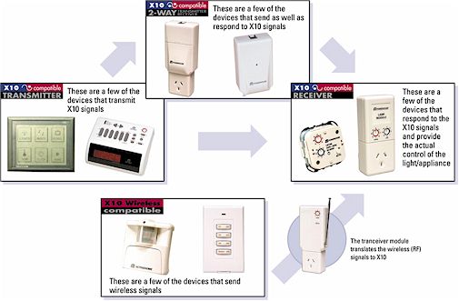 The X-10 system consists of Controllers (X10 transmitters) and Modules/Receivers: